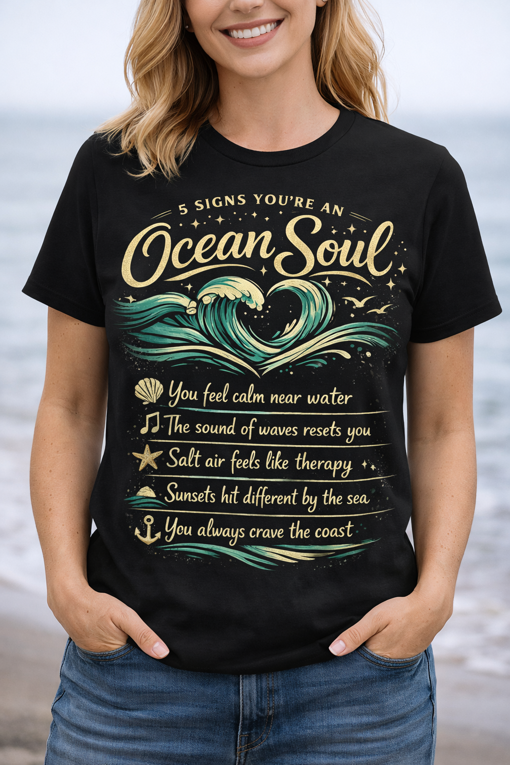 Graphic tees often focus only on visuals. However, this design adds emotional value. The “5 Signs You're an Ocean Soul” message invites curiosity and connection. It sparks conversation naturally.
