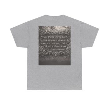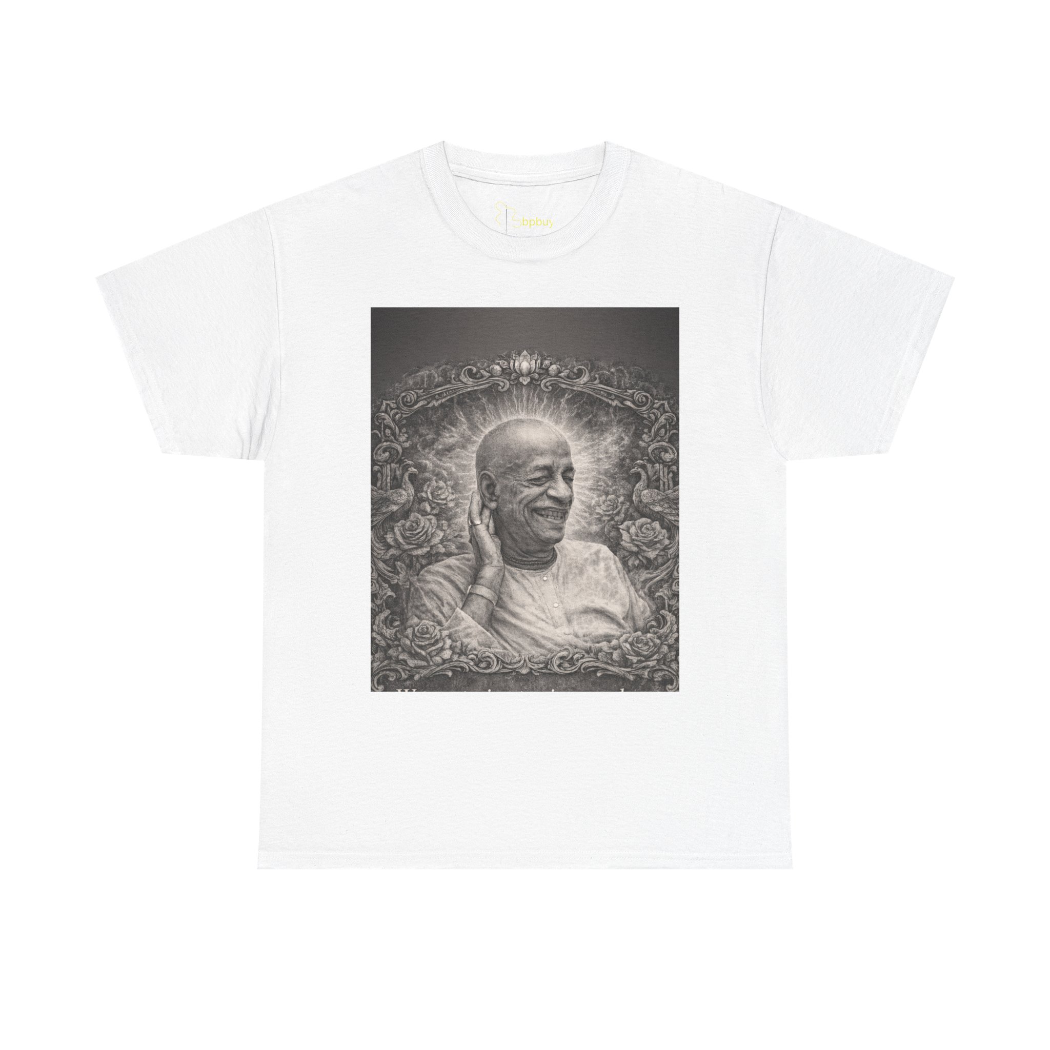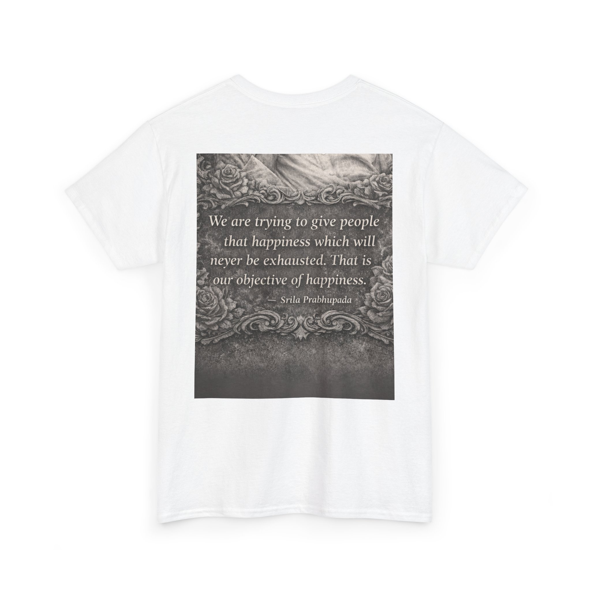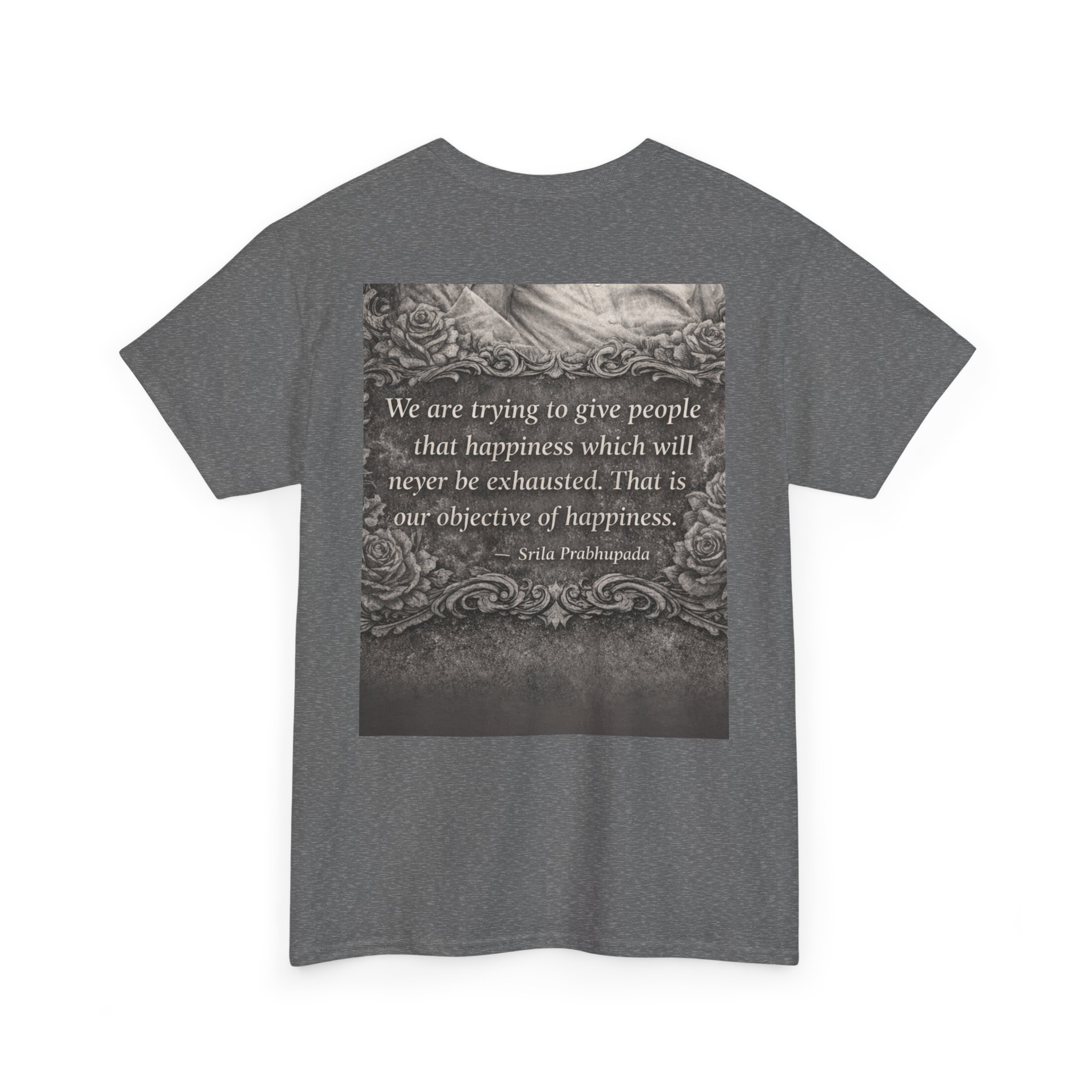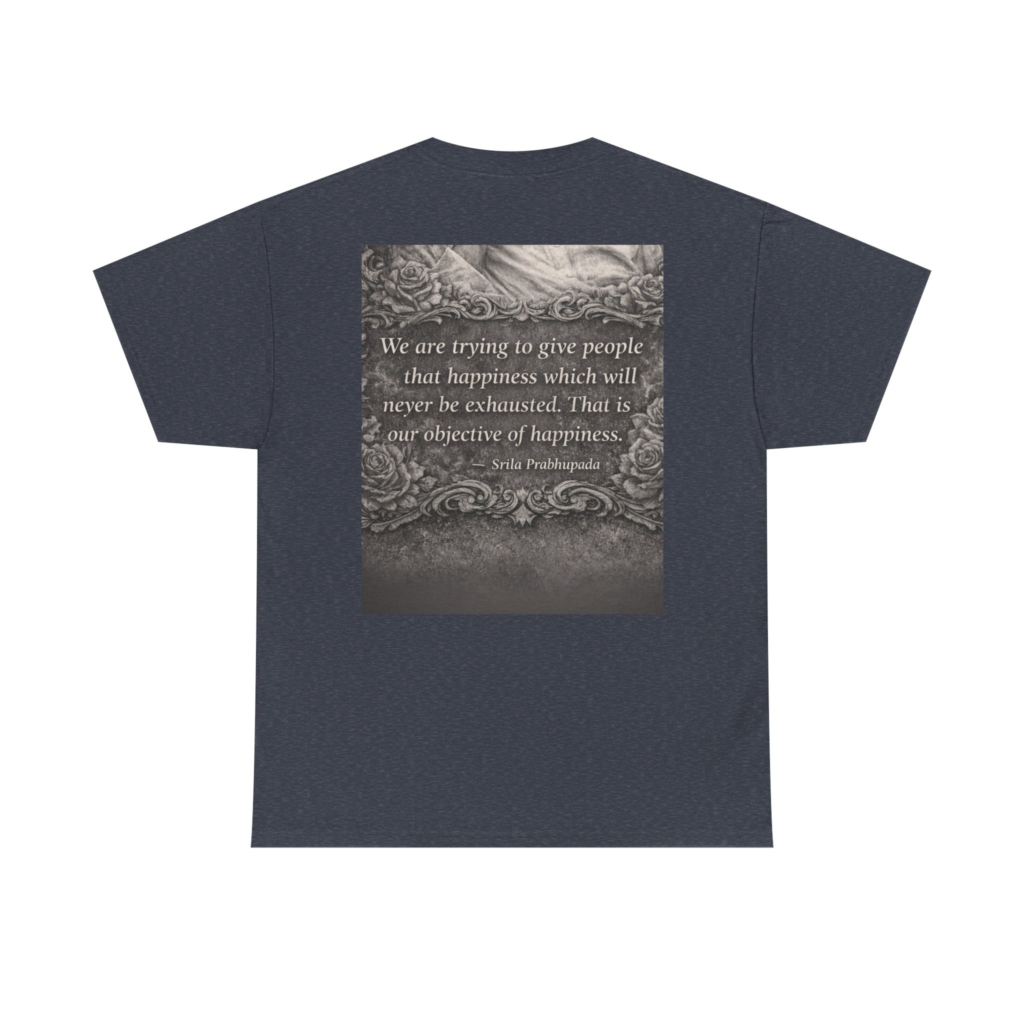Spiritual Guru Prabhupada Portrait Tee — “Our Objective of Happiness” Inspirational T-Shirt